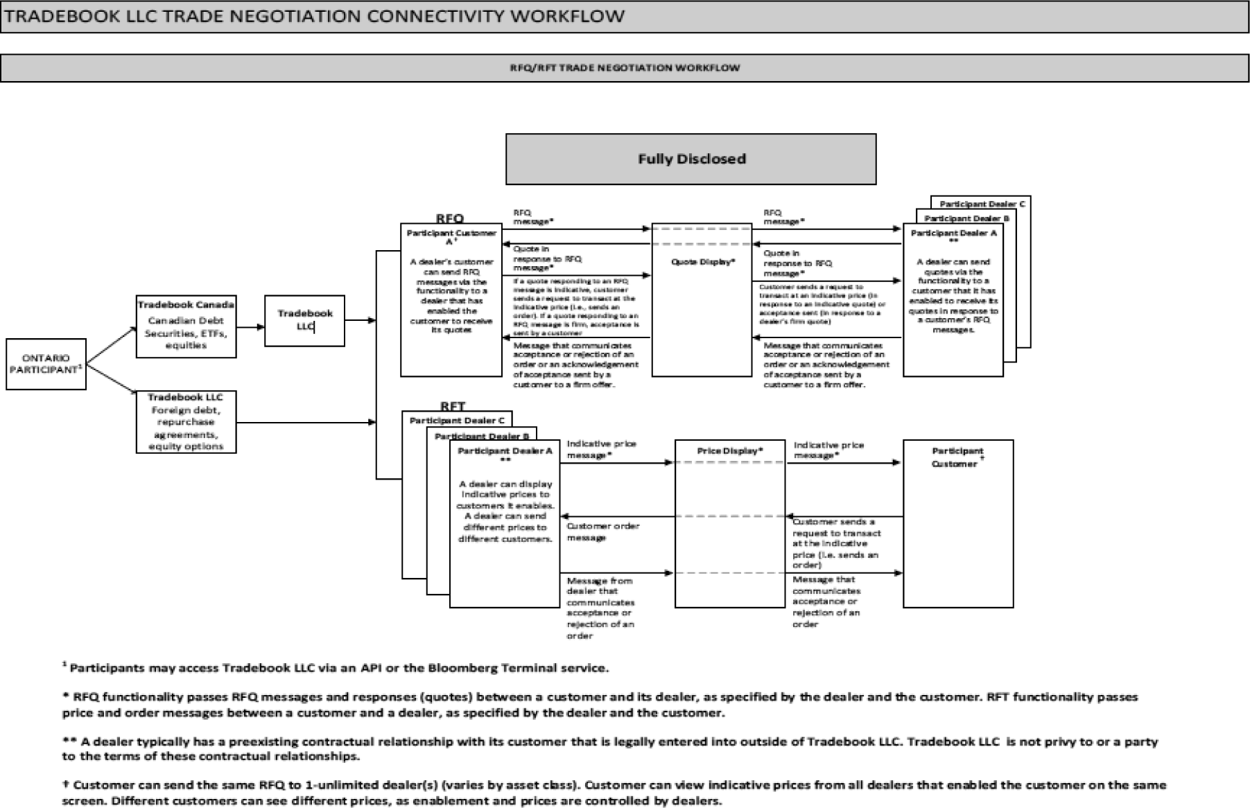 Canadian Participants using the Systems post and request quotations and execute trades in Canadian Debt Securities using Request for Quote ("RFQ") and Request for Trade ("RFT") protocols or functionalities.